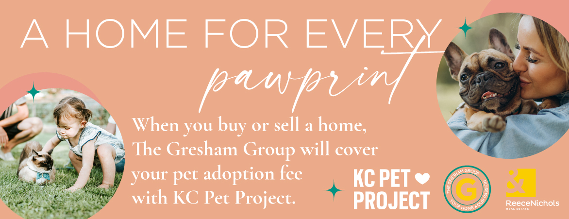 When you buy or sell with The Gresham Group, you’ll have six months after closing to adopt a pet and we’ll cover the adoption fee (up to a flat amount) through our partnership with KC Pet Project.