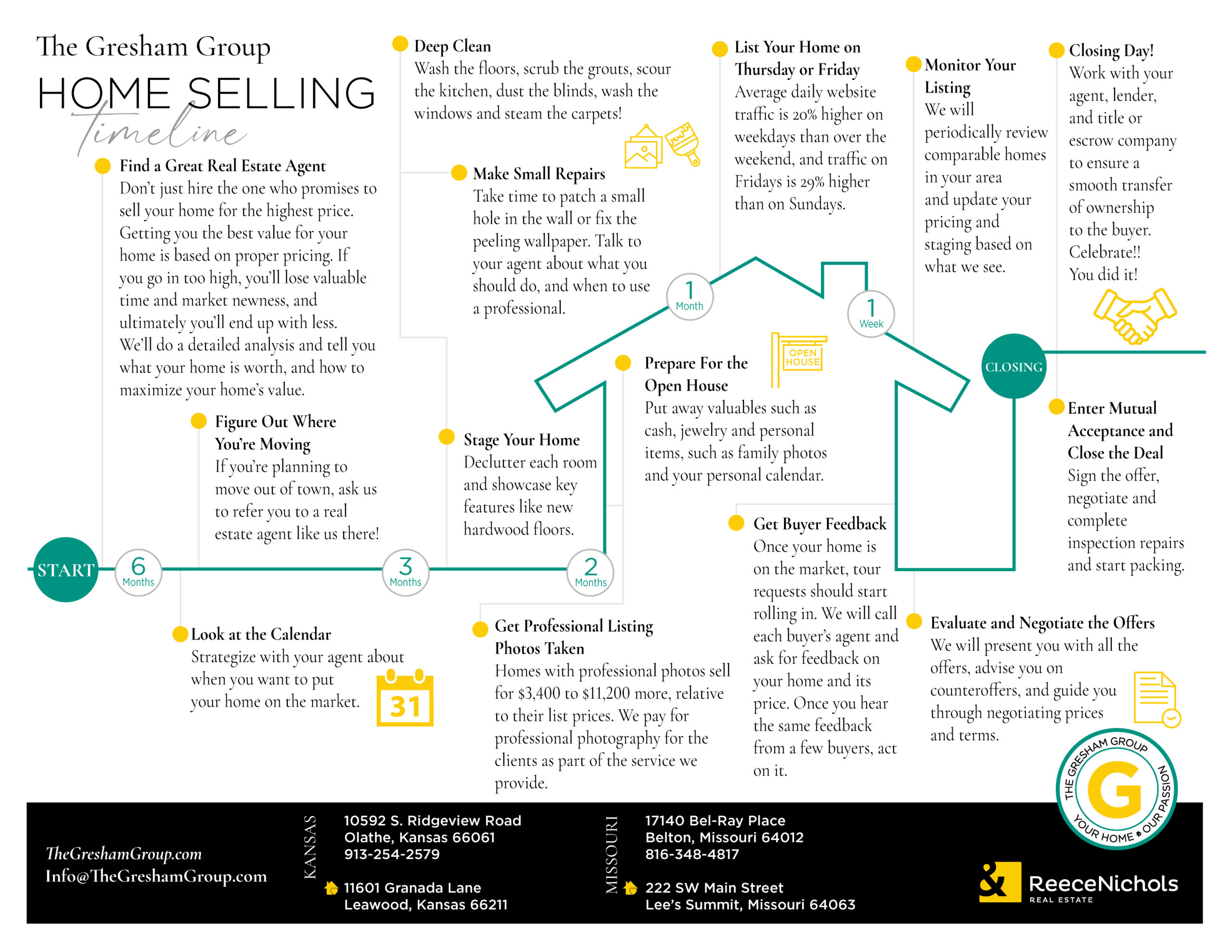 Your home will officially launch on the market, so be prepared and prepare your home for showings. Feedback will be requested from every real estate agent and your agent will host open houses.